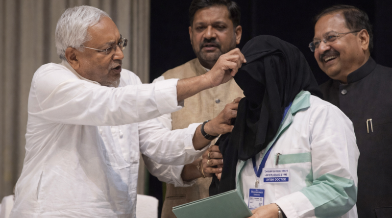 Nitish Kumar is embroiled in controversy after an AYUSH doctor was allegedly forced to remove her hijab; a video of the incident has gone viral, sparking a political uproar.